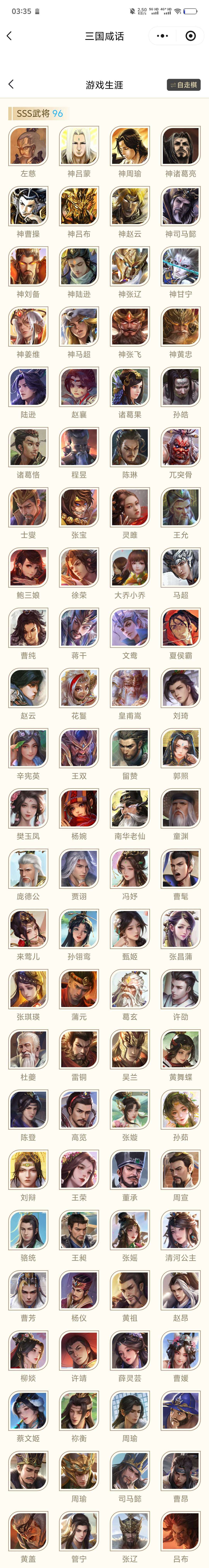卫将军 谋姜维 神张飞 孙翎鸾 武陆逊 神黄忠 威张辽 谋司马懿 威吕布 谋邓艾 神孙权 威孙尚香