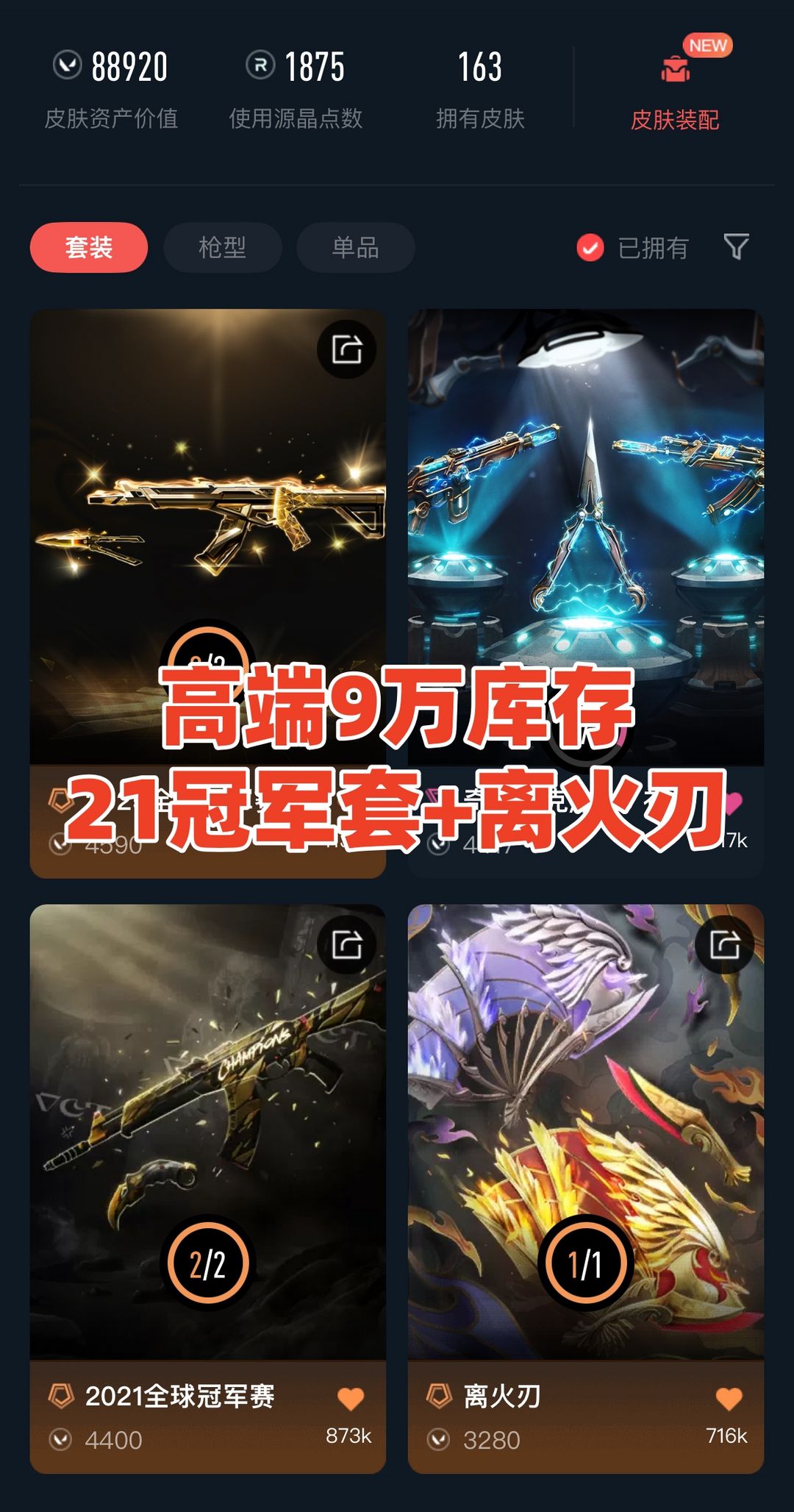 可排✅高端9万库存❤️离火刃21冠军套❤️多弥尔混沌25冠军套猫猫洪荒盖亚塑水宗紫金❤️影钩魔术火花