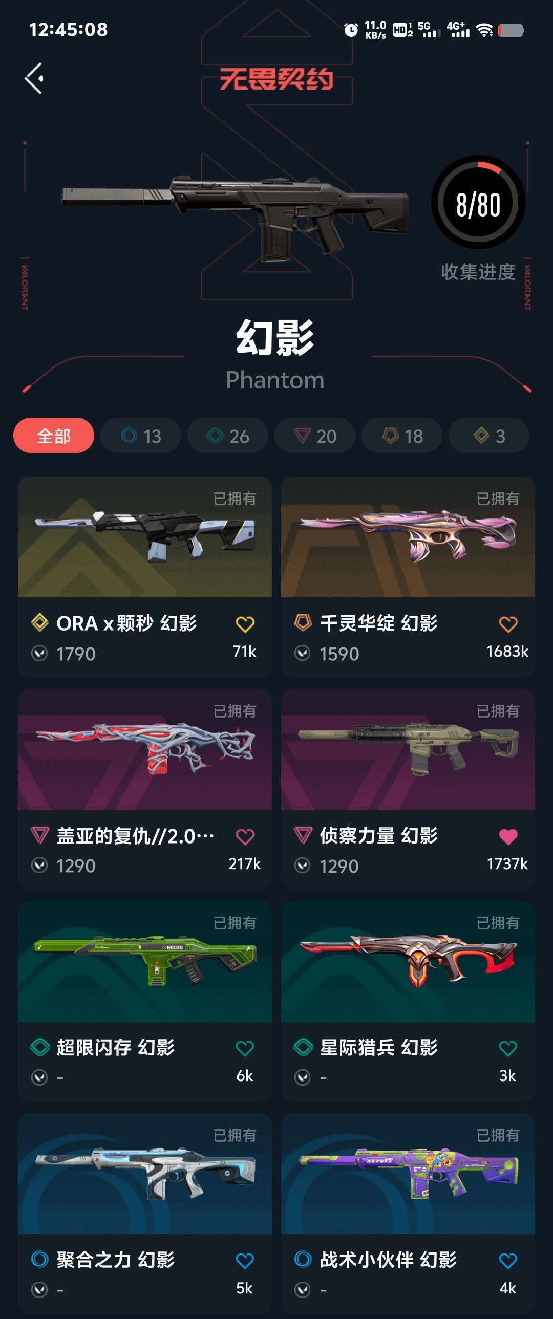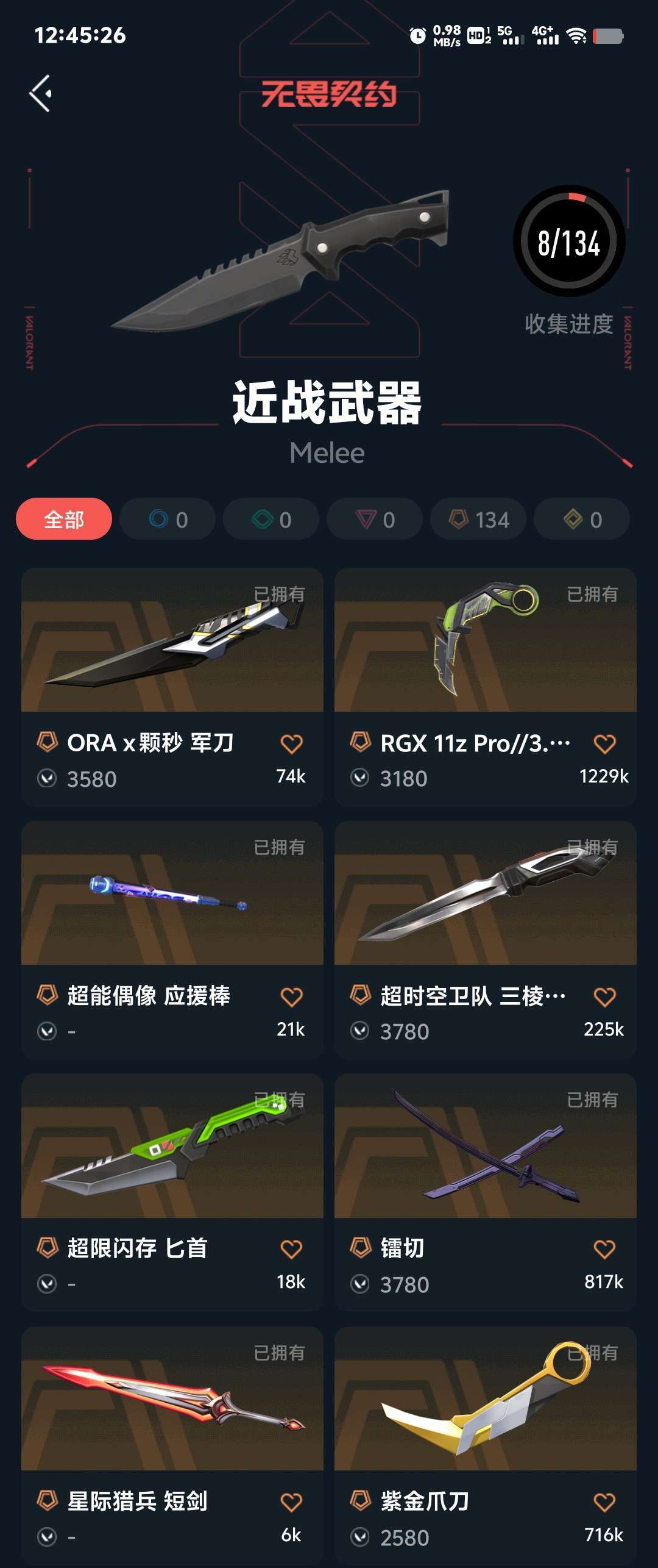 全英雄枪皮81,颗秒套 ,狂徒盖亚,奇点,多弥尔,侦查幻影,千灵华绽 ,紫金爪刀,显卡爪刀,三轮军刀