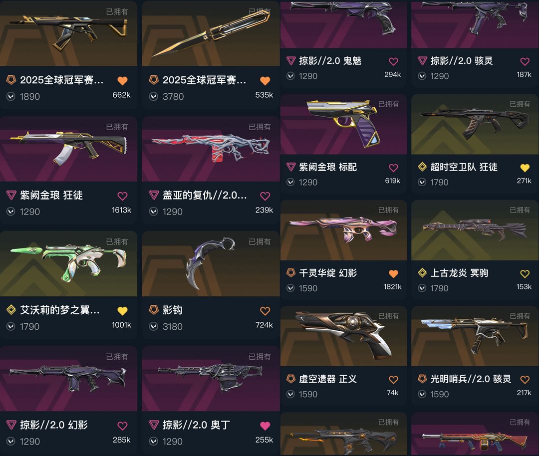 可排✅精品库存⭐25冠军套紫金超时空卫队⭐影钩蝴蝶刀⭐掠影2.0千灵华绽毁灭骑士⭐虚无正义龙炎冥狙