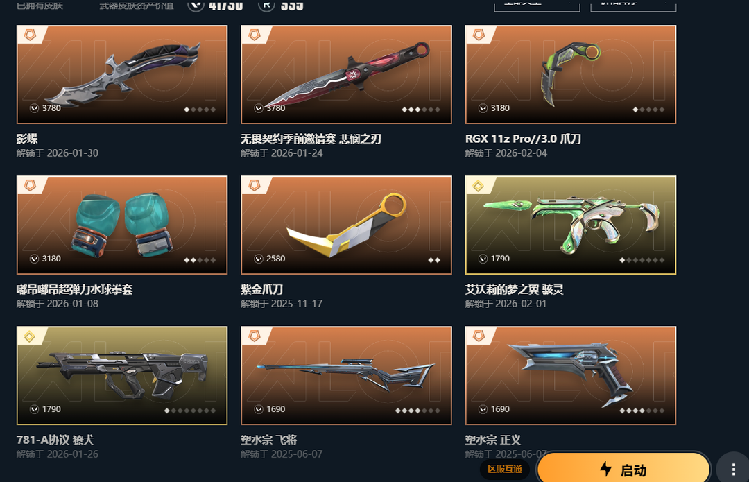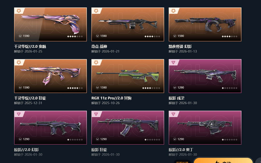 装备描述:冲锋枪:(艾沃莉的梦之翼 骇灵 炫彩2);(艾沃莉的梦之翼 骇灵 炫彩1);(艾沃莉的梦之翼 骇灵 炫彩3) 步枪:(侦察力量 幻影 炫彩1);(侦察力量 幻影 炫彩2);(侦察力量 幻影 炫彩3);(781-A协议 獠犬 炫彩1);(781-A协议 獠犬 炫彩2);(781-A协议 獠犬 炫彩3);(日冕雄师 狂徒 炫彩1);(日冕雄师 狂徒 炫彩2);(日冕雄师 狂徒 炫彩3);(黯夜怪谈 幻影 炫彩1);(黯夜怪谈 幻影 炫彩3);(黯夜怪谈 幻影 炫彩2);(掠影//2.0 幻影 炫彩1);(掠影//2.0 幻影 炫彩2);(掠影//2.0 幻影 炫彩3) 狙击步枪:(RGX 11z Pro//2.0 冥驹 炫彩2);(RGX 11z Pro//2.0 冥驹 炫彩1);(RGX 11z Pro//2.0 冥驹 炫彩3) 机关枪:(掠影//2.0 奥丁 炫彩1);(掠影//2.0 奥丁 炫彩2);(掠影//2.0 奥丁 炫彩3) 近战武器:(RGX 11z Pro//3.0 爪刀 炫彩1);(RGX 11z Pro//3.0 爪刀 炫彩3);(RGX 11z Pro//3.0 爪