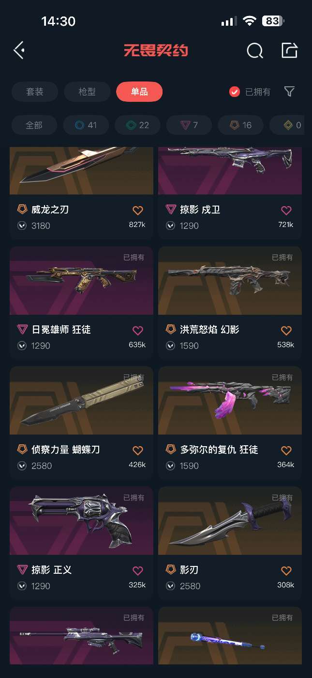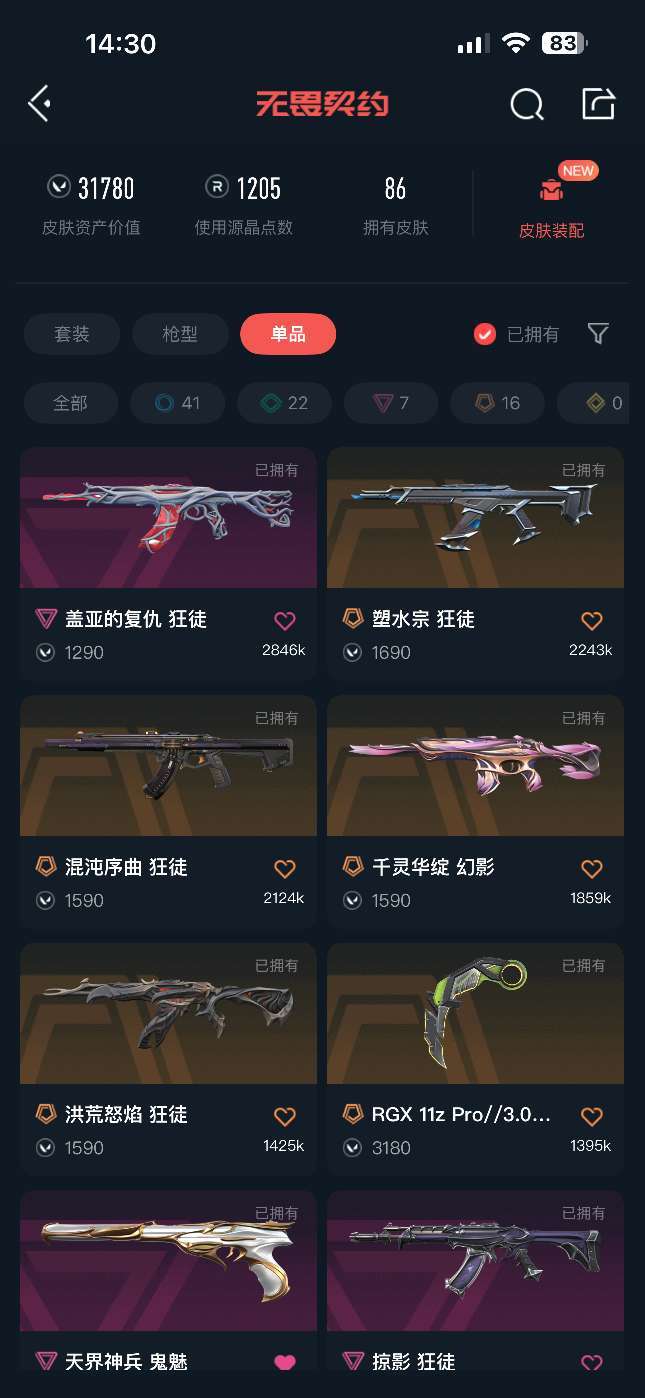 武器皮肤数量:86