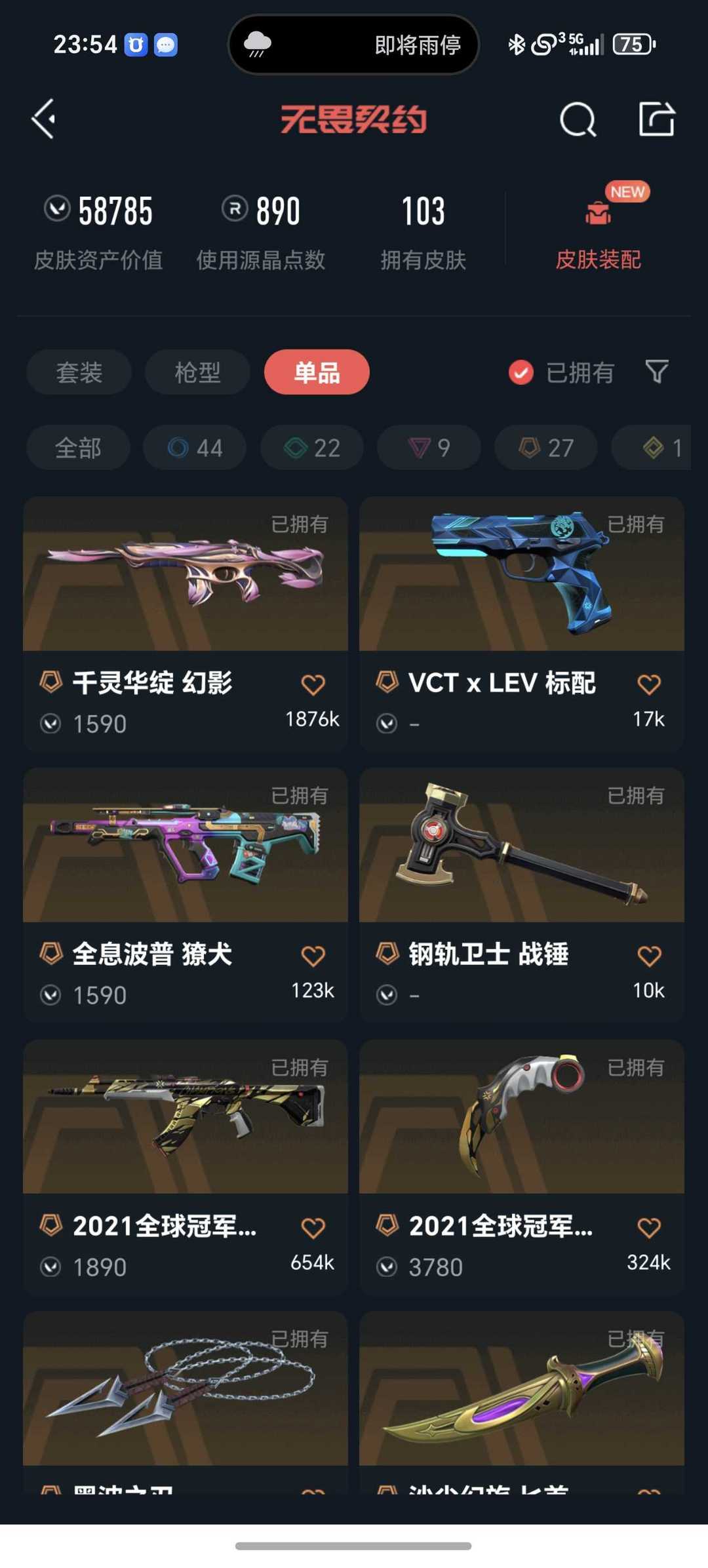【21+23冠军套】103总皮肤+套装4终极1传奇18卓越9+塑水宗+盖亚+归零者+苍龙狙+侦查弧光