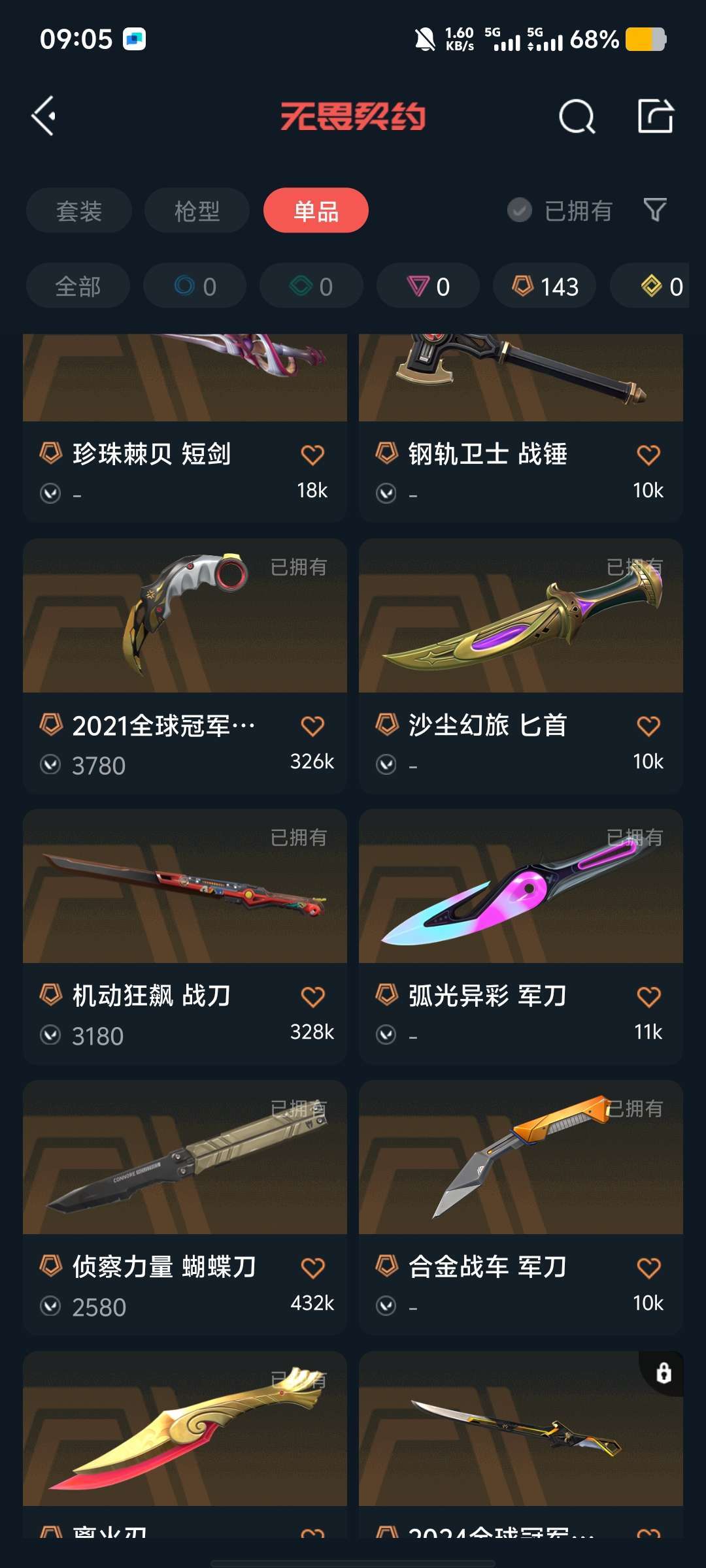 武器皮肤数量:143