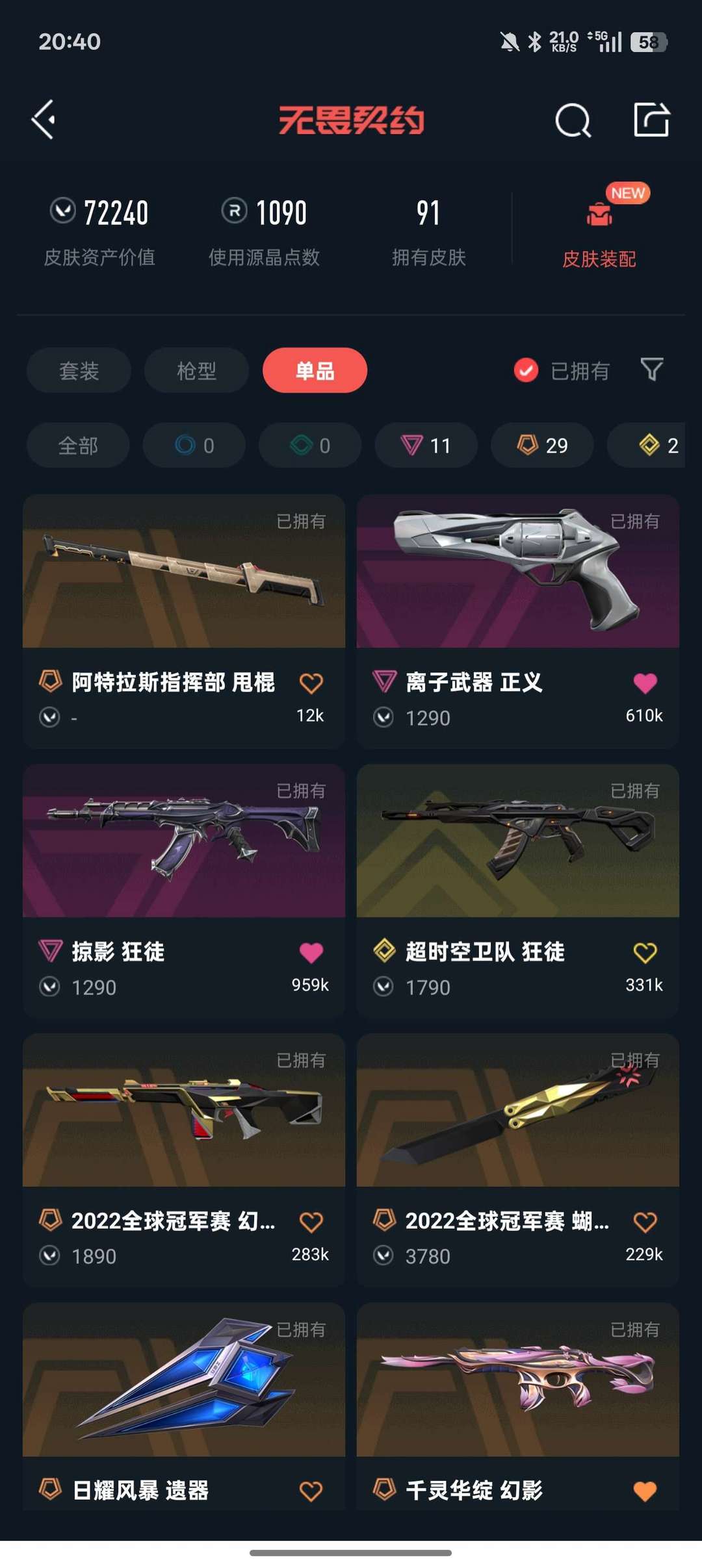 武器皮肤数量:91