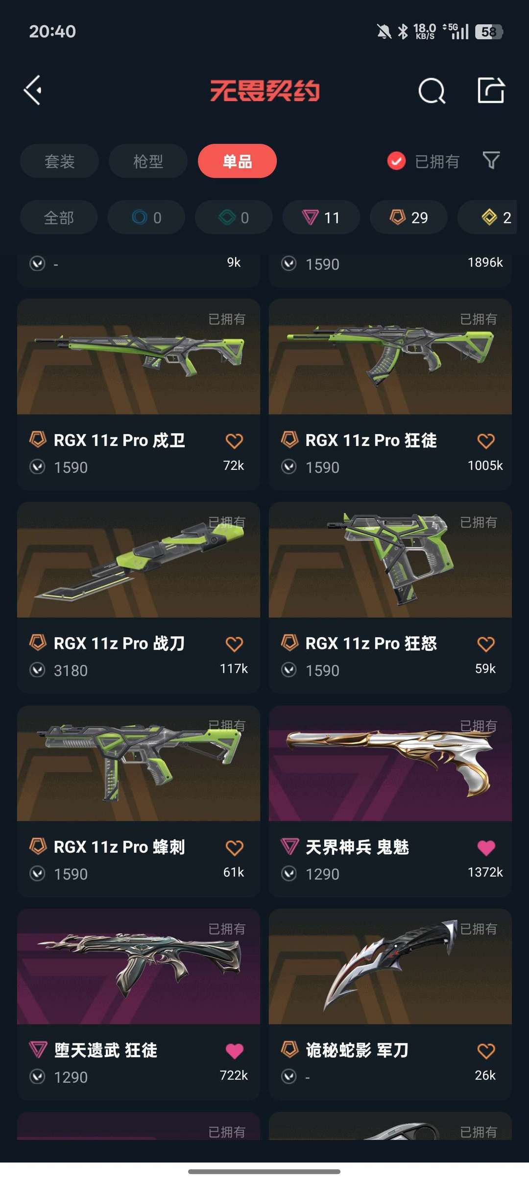 传奇数量:29