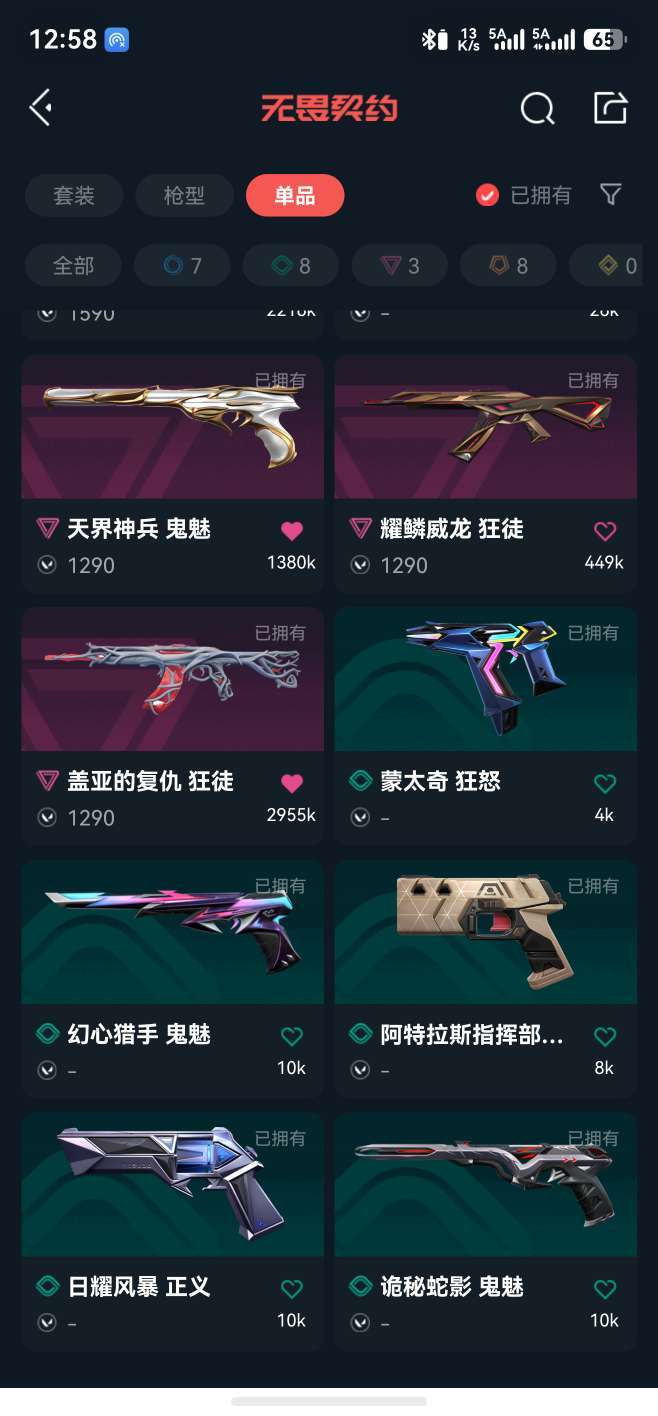 装备描述:狂徒有盖亚威龙混沌塑水宗25冠军幻影有古神鬼魅有天界大狙有莲花刀有25冠军和狮子大剑