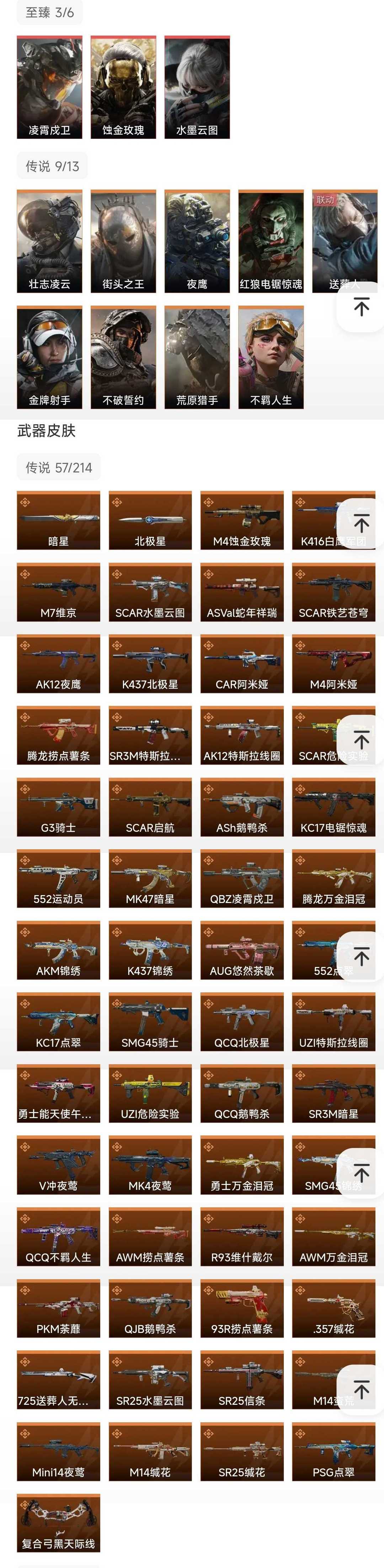 皮肤号 北极星暗星凌霄戍卫,蚀金玫瑰,水墨云图,57款传说枪皮,12干员