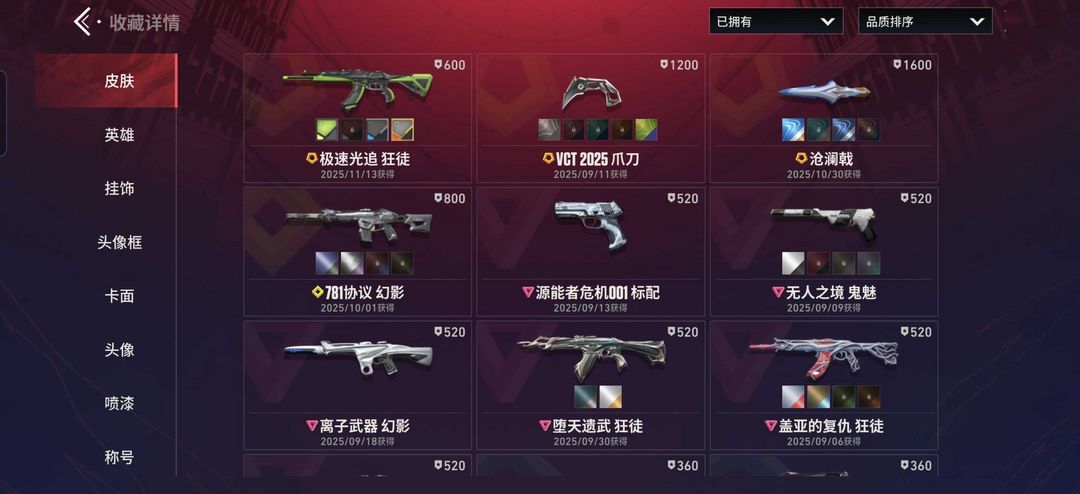 VCT爪刀+沧澜戟❤盖亚+显卡+堕天狂徒❤781协议+离子幻影❤堕天冥驹+无人之境鬼魅+001标配❤