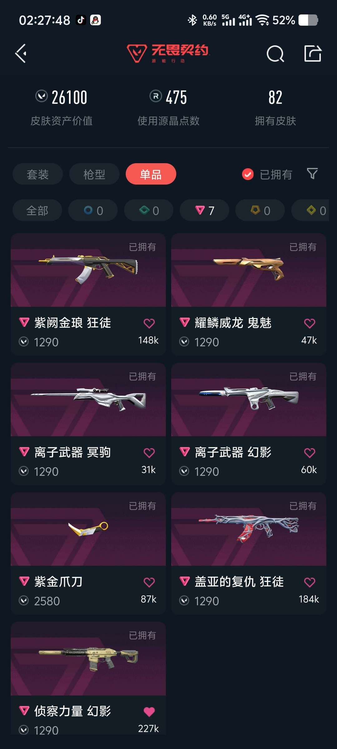 装备描述:超凡 狂徒(紫金、盖亚、显卡、猫猫)幻影(侦查、离子)近战武器(雷切、离火刃、紫金爪)威龙鬼魅、奇点正义,离子大狙