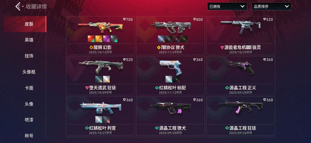 4满醒狮幻影、781协议獠犬、源能者危机001骇灵、堕天遗武狂徒、满英雄26皮、1传奇1终极2卓越