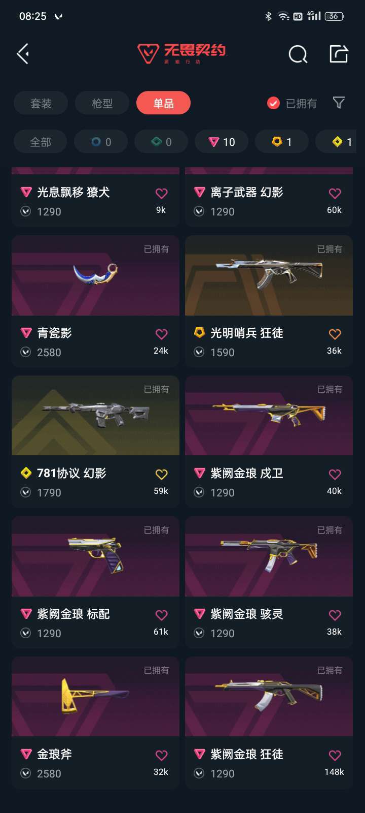 装备描述:紫金1.0全套光明哨兵盖亚(狂徒)离子781(幻影)光息漂移撩犬耀鳞威龙鬼魅青瓷影