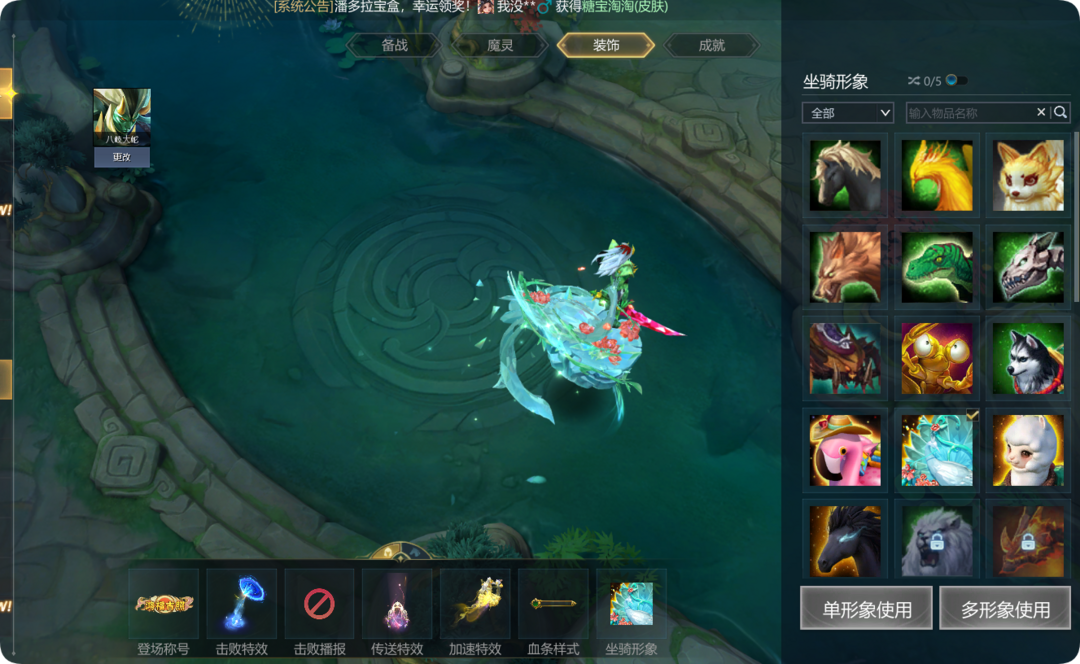 装备描述:V9 孔雀坐骑 龙吸水击败特效 皮肤426 逃跑拉黑