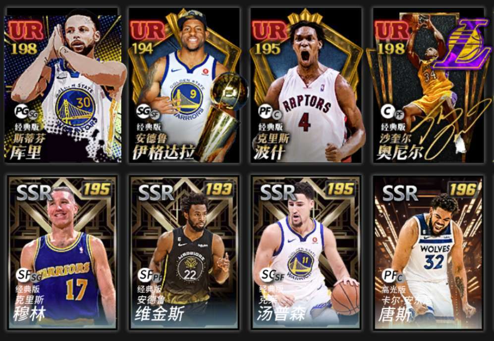 玫瑰ur库里ur奥尼尔一内一外,ur伊戈达拉,ssr汤普森维金斯唐斯穆林,金州勇士队小套装