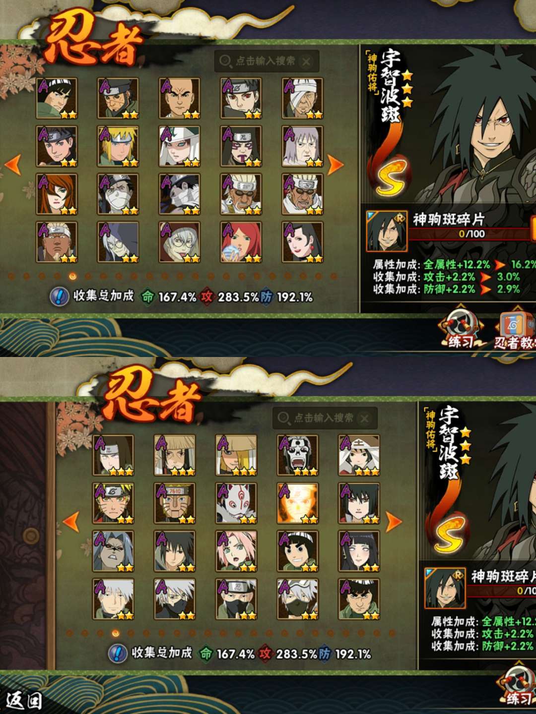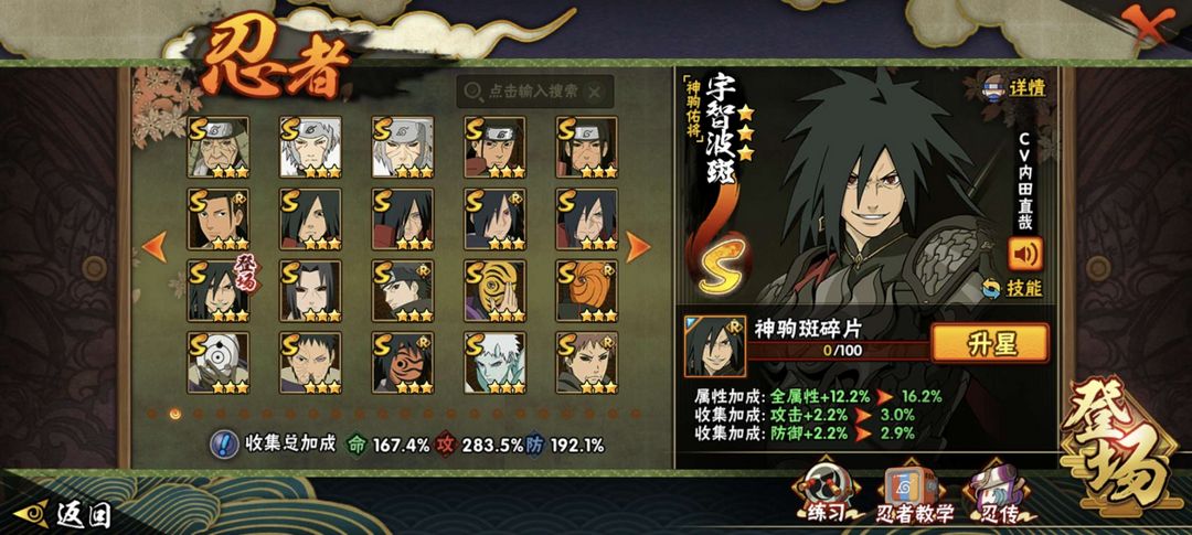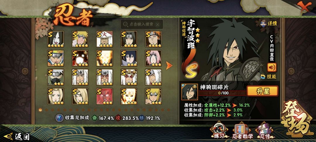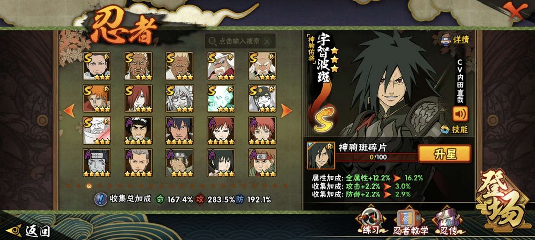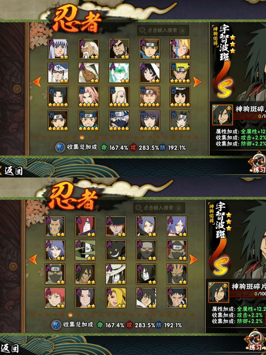 装备描述:51S 78A 359忍者2610w战 黑绝/带土全+桶/超哥/漂泊佩恩/六尾/漂泊南/罗莎/自来也